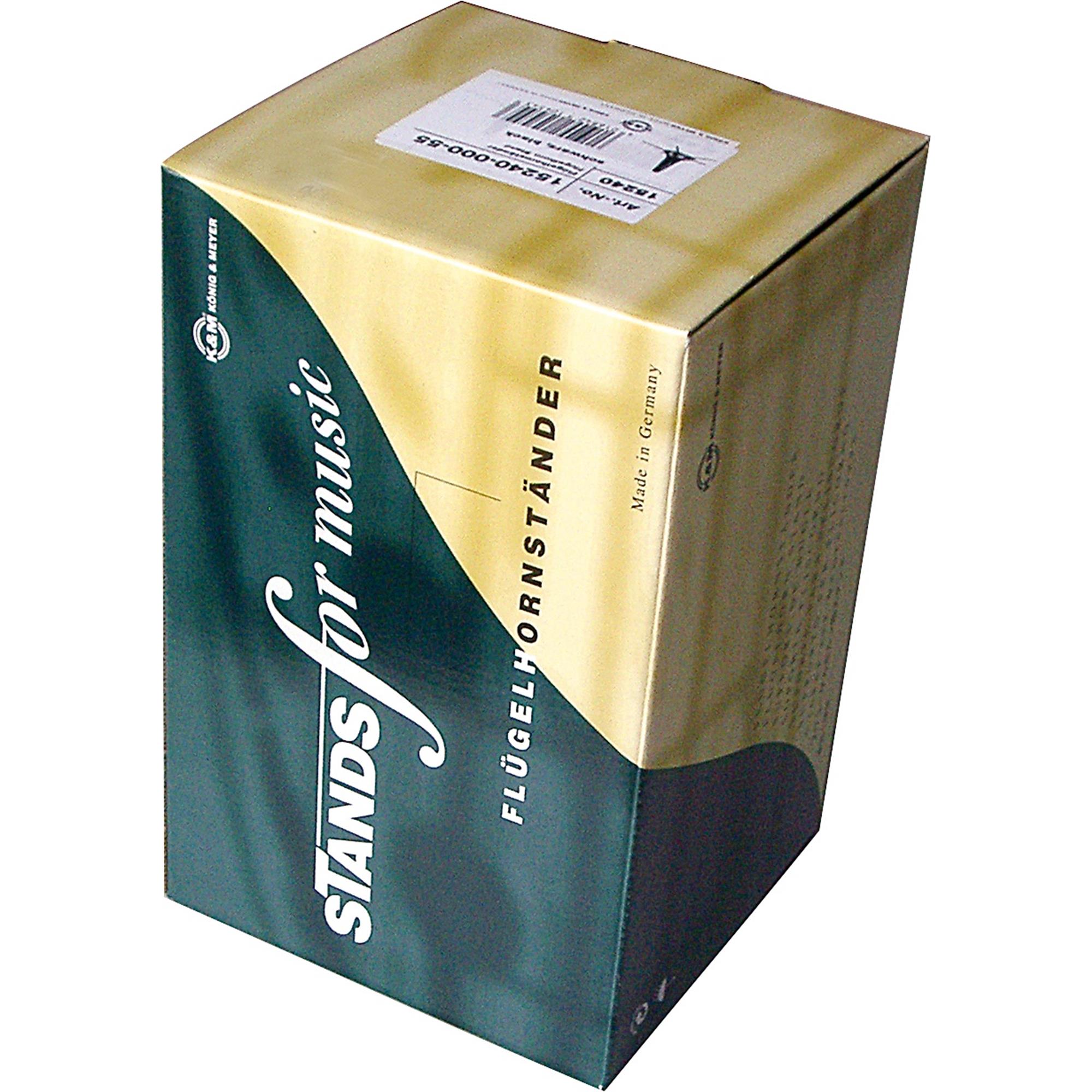 A robust plastic flugelhorn stand: its five-legged base offers good stability, and unscrews and folds into the peg, conveniently allowing it to be stored inside a case or gig bag in the bell of the instrument.